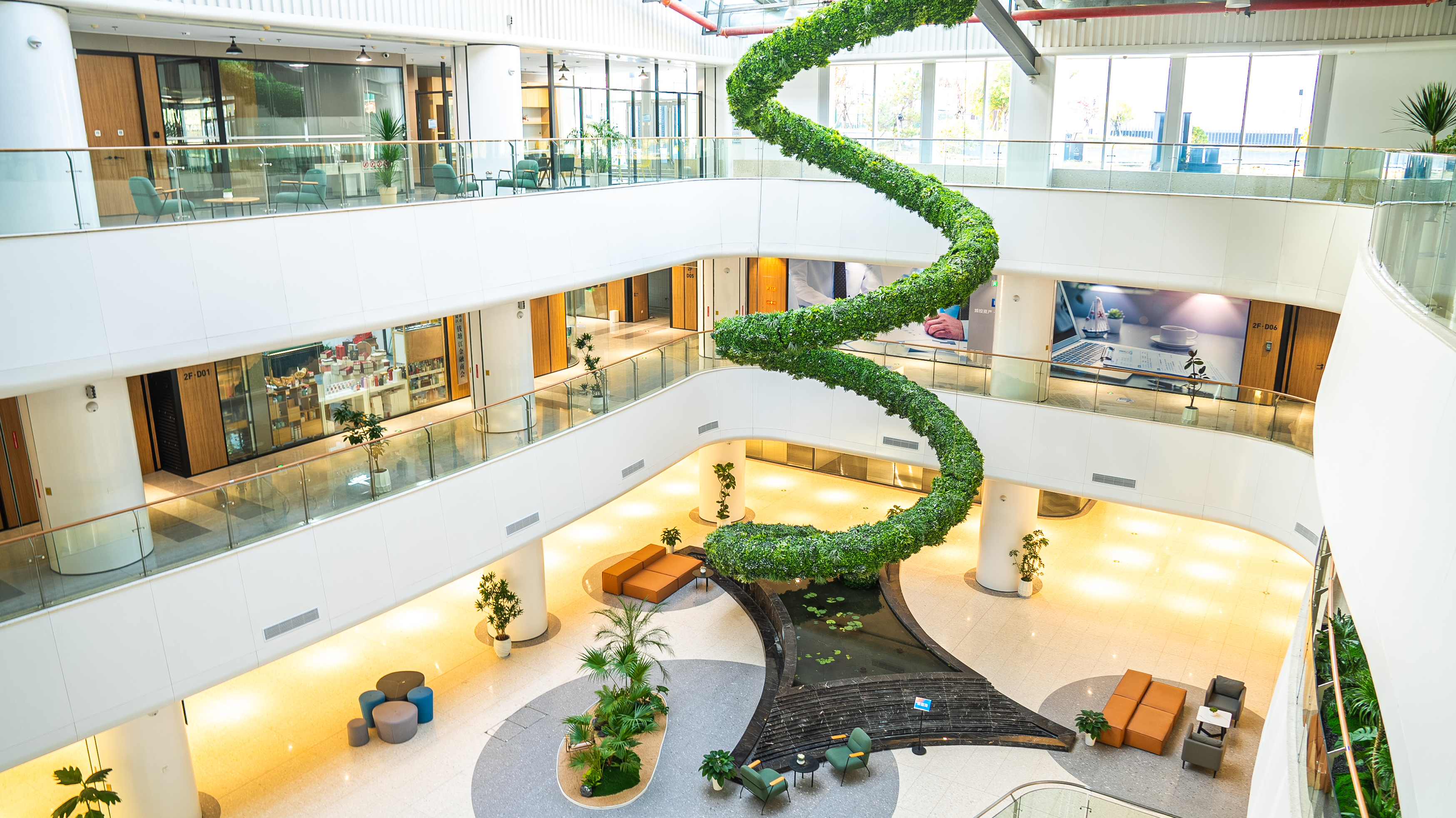- 3—4 层:众创空间、孵化苗圃、联合办公区(钱唐量子空间),提供 10㎡-8000㎡ 灵活办公,支持自由分割与定制化装修,实现“拎包入住”。